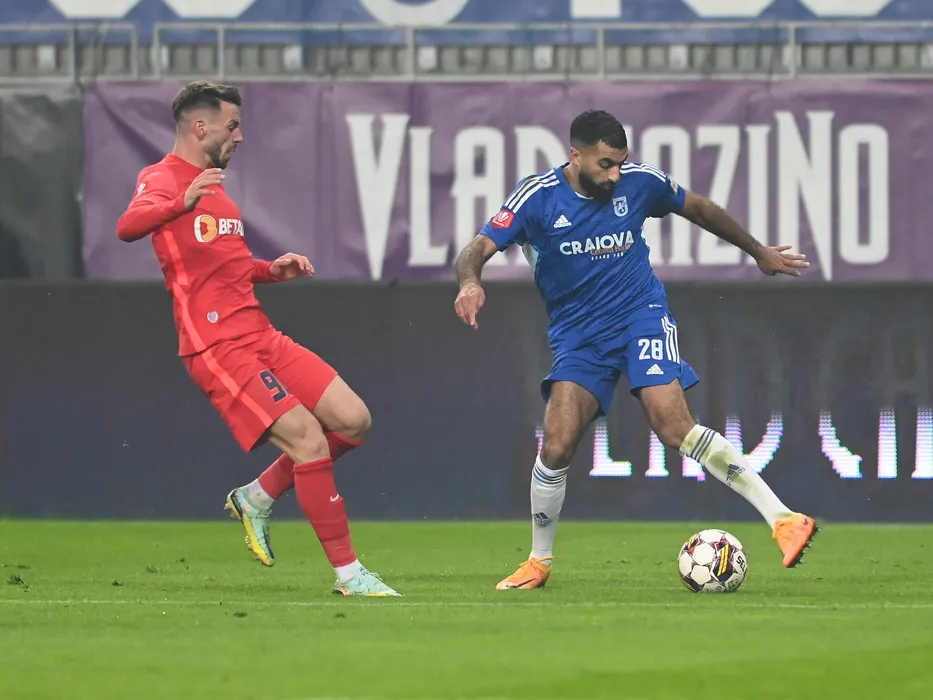 Andrei Ioan Cordea si Yassine Bahassa in meciul de fotbal dintre FC U Craiova si FCSB, contand pentru Superliga Superbet, desfasurat pe Stadionul Ion Oblemenco din Craiova, duminica 13 noiembrie 2022. © FOTO:Razvan Pasarica/SPORT PICTURES