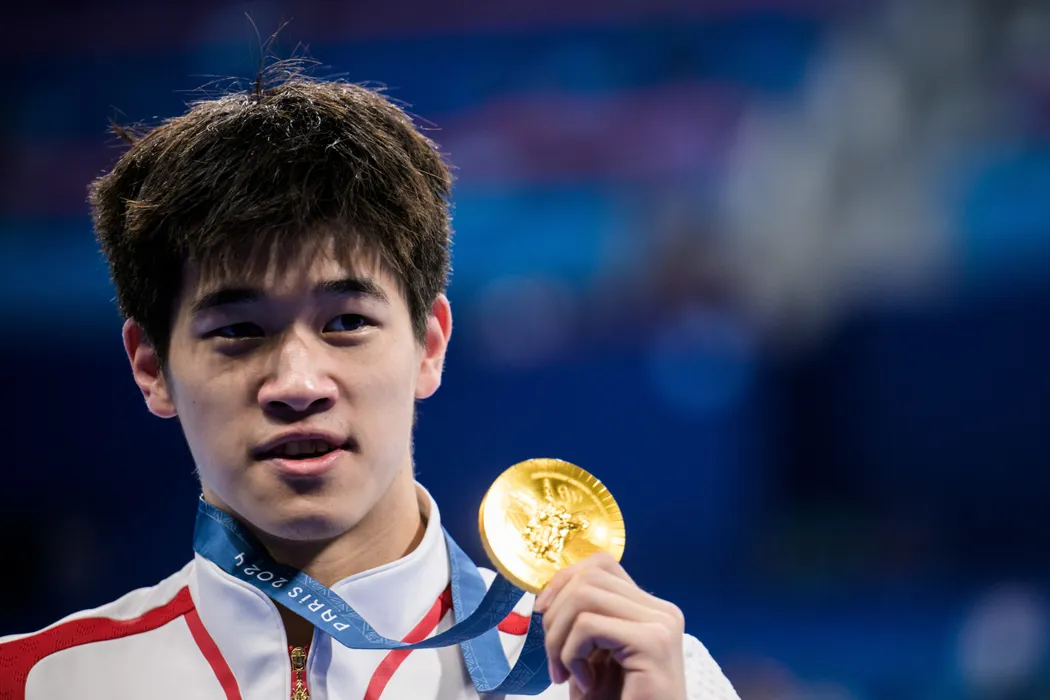 July 31, 2024, Paris, FRANCE: 240731 Zhanle Pan of China poses with his gold medal after winning men’s 100 meters freestyle swimming final during day 5 of the Paris 2024 Olympic Games on July 31, 2024 in Paris. .Photo: Joel Marklund / BILDBYRÃ…N / kod JM / MT0632.simning swimming svømming olympic games olympics os ol olympiska spel olympiske leker paris 2024 paris-os paris-ol 5 bbeng (Credit Image: © Joel Marklund/Bildbyran via ZUMA Press)