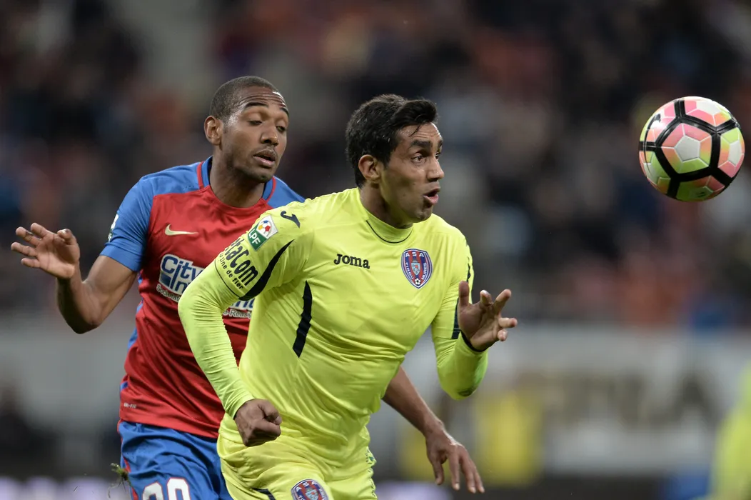 Banel Nicolita (D), de la ASA Targu Mures, preia un balon in timpul meciului de fotbal contra echipei Steaua Bucuresti din etapa a XXVI-a a Ligii 1, disputat pe stadionul Arena Nationala din Capitala, sambata 4 martie 2017. ALEXANDRU DOBRE / MEDIAFAX FOTO