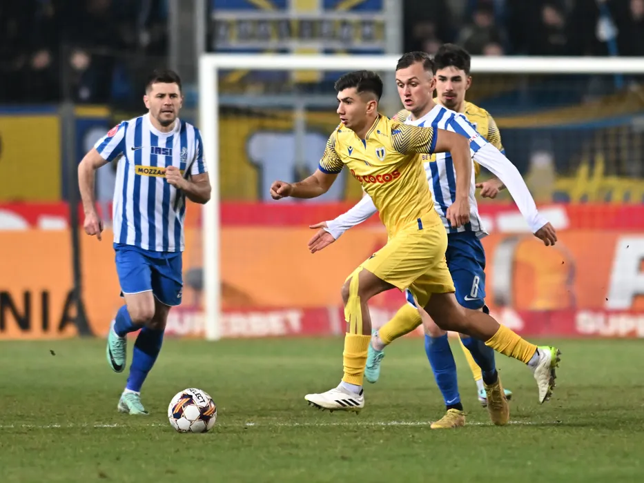 Alexandru Marian Musi si Luca Alessandro Mihai în meciul de fotbal dintre Petrolul Ploiesti si Politehnica Iasi, contând pentru Superliga Superbet, desfășurat pe Stadionul Ilie Oana din Ploiesti, vineri 16 februarie 2024. © FOTO: Răzvan PĂSĂRICĂ/SPORT PICTURES