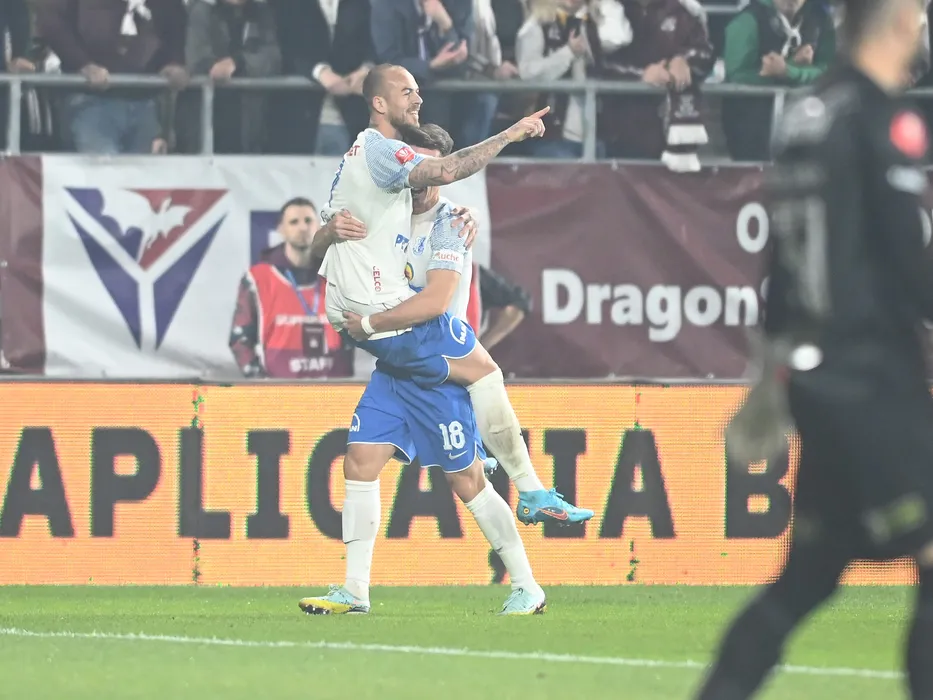Denis Alibec se bucura dupa un gol marcat in meciul de fotbal dintre Rapid Bucuresti si Farul Constanta, contand pentru Superliga Superbet, desfasurat pe Stadionul Rapid Giulesti din Bucuresti, vineri 21 octombrie 2022. © FOTO:Razvan Pasarica/SPORT PICTURES