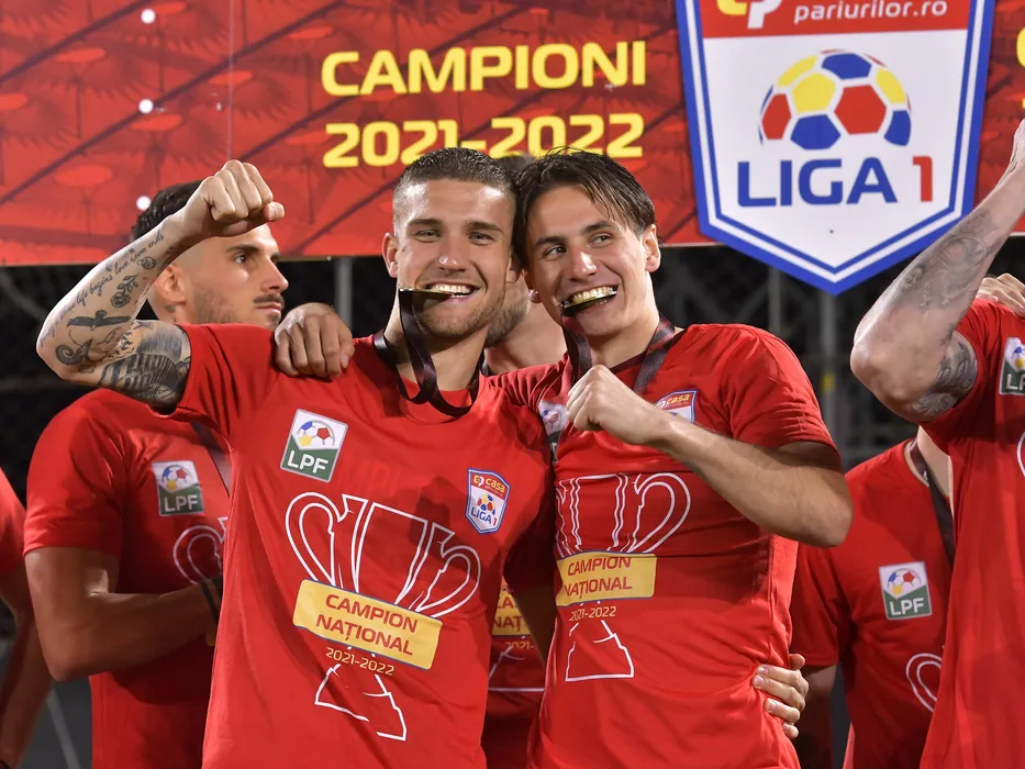 Bucurie clujeana cu George Daniel Birligea si Raoul Mal dupa castigarea campionatului in urma meciului de fotbal dintre CFR Cluj si Universitatea Craiova, contand pentru Play-off-ul Ligii 1 Casa Pariurilor, desfasurat pe Stadionul CFR Dr. Constantin Radulescu din Cluj Napoca, duminica 15 mai 2022. © FOTO:Razvan Pasarica/SPORT PICTURES