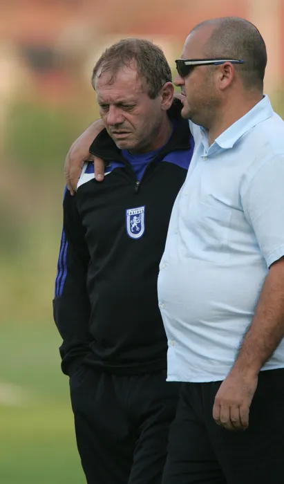 Finantatorul echipei Universitatea Craiova, Adrian Mititelu (D) si Ilie Balaci, manager general, discuta pe stadionul Ion Oblemenco din Craiova, luni, 21 august 2007. DARIUS MITRACHE / MEDIAFAX FOTO