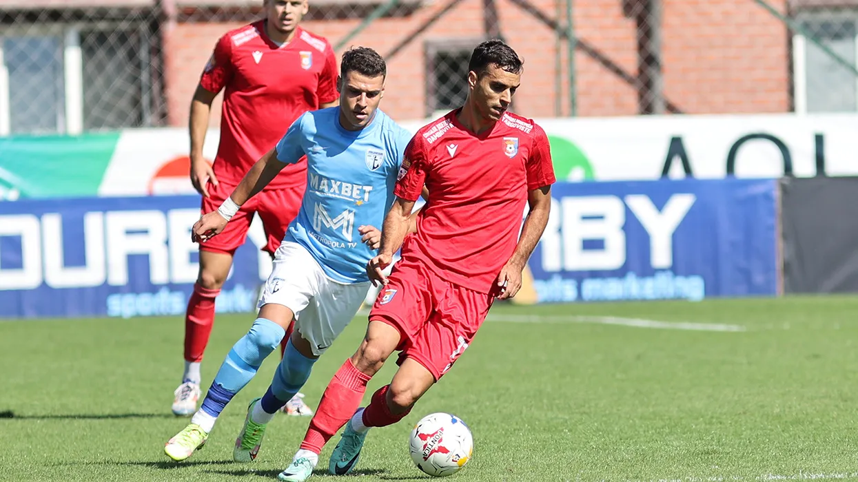 Ivan Pesic și Daniel Toma în meciul de fotbal dintre FC Voluntari si AFC Chindia Târgoviște, contând pentru Liga 2 Casa Pariurilor, desfasurat pe Stadionul Anghel Iordănescu din Voluntari, duminică 15 septembrie 2024. © FOTO: Gică FLUȘTER/SPORT PICTURES