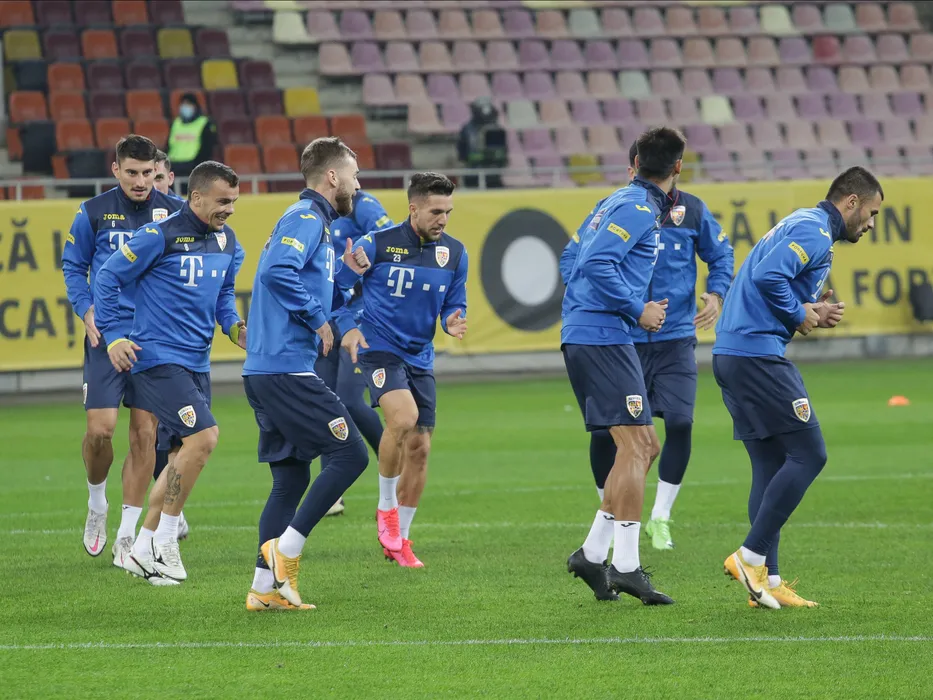 Fotbalistii romani Lucian Cristea, Dan Nistor, Alexandru Maxim, Alexandru Baluta si Valentin Cretu la antrenamentul oficial de dinaintea meciului anulat impotriva Norvegiei, contand pentru Liga Natiunilor desfasurat pe Arena Nationala din Bucuresti, sambata 14 noiembrie 2020. © FOTO:SPORT PICTURES