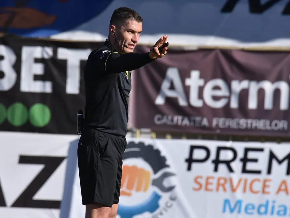 Arbitrul central Istvan Kovacs in meciul de fotbal dintre Gaz Metan Medias si Academica Clinceni, contand pentru Liga 1 Casa Pariurilor, desfasurat fara spectatori pe Stadionul Municipal din Medias, sambata 30 ianuarie 2021. © FOTO:Alexandru Veres/SPORT PICTURES