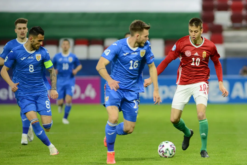 Denis Harut, Marius Marin si Adrian Szoke in meciul de fotbal dintre Ungaria U21 si Romania U21, contand pentru Campionatul European U21, desfasurat pe Bozsik Arena din Budapesta, sambata 27 martie 2021. © FOTO:Cristi Stavri/SPORT PICTURES