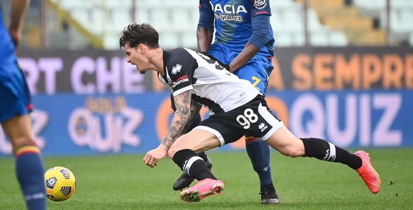 Nella foto: Dennis Man (Parma Calcio) in azione contrastato da Stefano Okaka (Udinese Calcio)