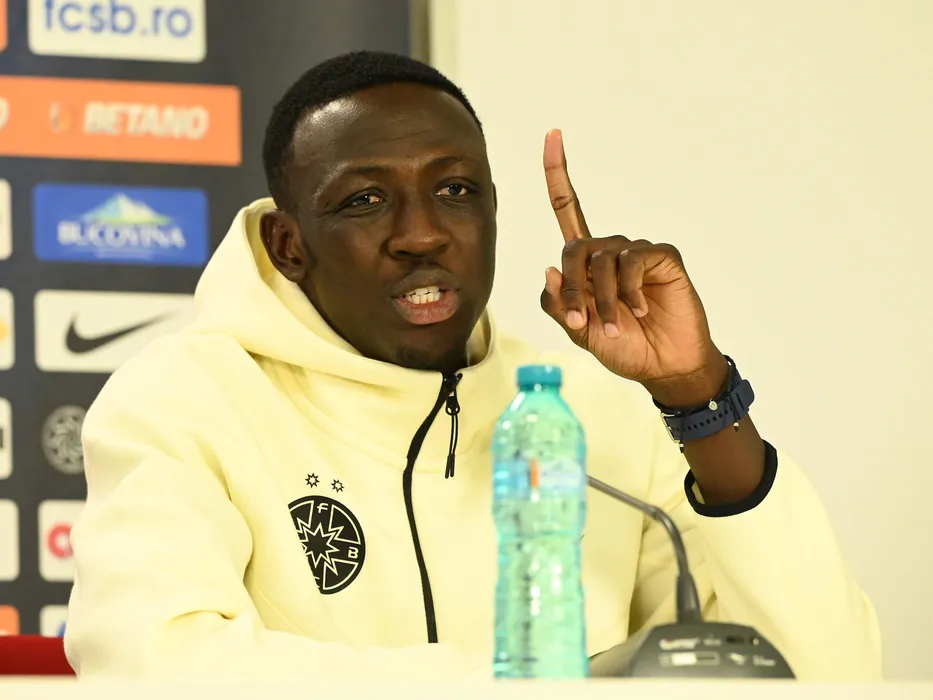 Baba Alhassan la o conferinta de presa desfasurata la Baza de antrenament FCSB din Bucuresti, luni 8 ianuarie 2024. © FOTO:Razvan Pasarica/SPORT PICTURES