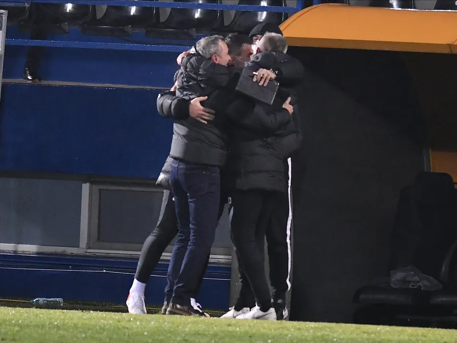 Bucurie a staff-ului constantean cu Mircea Rednic si Sorin Radoi dupa meciul de fotbal dintre FC Viitorul Constanta si FC Hermannstadt, restanta a etapei a-12-a din cadrul Ligii 1 Casa Pariurilor, desfasurat fara spectatori pe Stadionul Central al Academiei Gheorghe Hagi din Ovidiu, duminica 10 ianuarie 2021. © FOTO:Razvan Pasarica/SPORT PICTURES