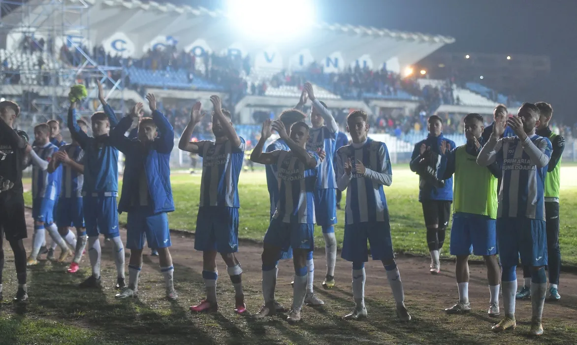 Fotbalistii hunedoreni saluta galeria dupa meciul de fotbal dintre CS Hunedoara si FCSB, contand pentru Cupa Romaniei, desfasurat pe Stadionul Michael Klein din Hunedoara, miercuri 22 septembrie 2021. © FOTO:Razvan Pasarica/SPORT PICTURES