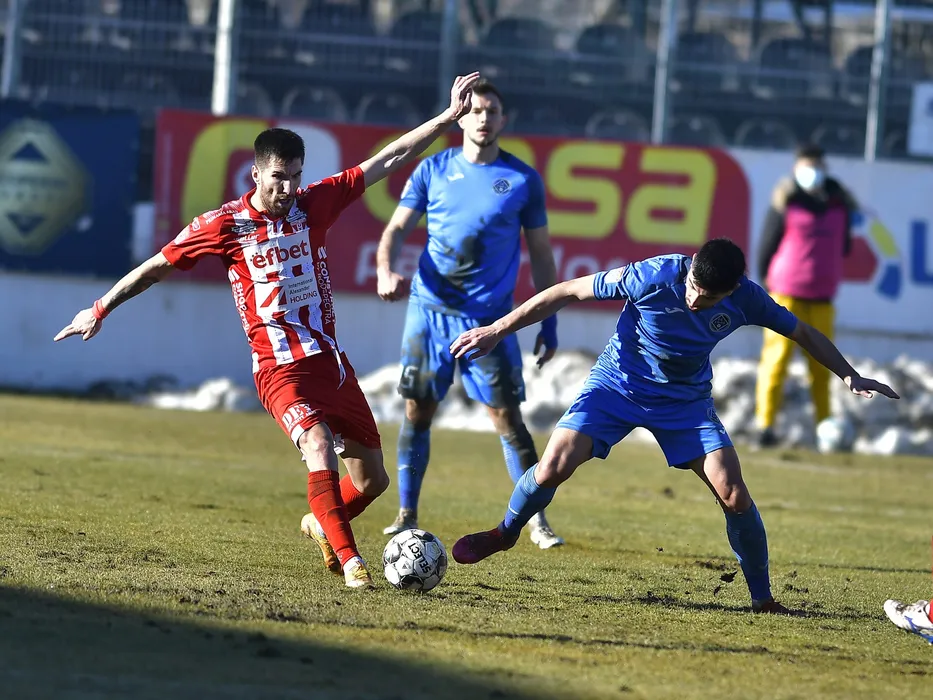 Valentin Buhacianu si Florin Vasile Achim in meciul de fotbal dintre Academica Clinceni si UTA Arad, contand pentru Liga 1 Casa Pariurilor, desfasurat pe Clinceni Arena din Clinceni, joi 4 februarie 2021. © FOTO:Razvan Pasarica/SPORT PICTURES