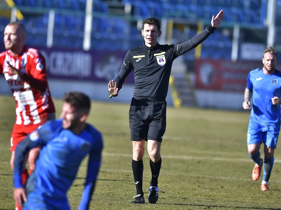 Arbitrul central Horia Gabriel Mladinovici in meciul de fotbal dintre Academica Clinceni si UTA Arad, contand pentru Liga 1 Casa Pariurilor, desfasurat pe Clinceni Arena din Clinceni, joi 4 februarie 2021. © FOTO:Razvan Pasarica/SPORT PICTURES