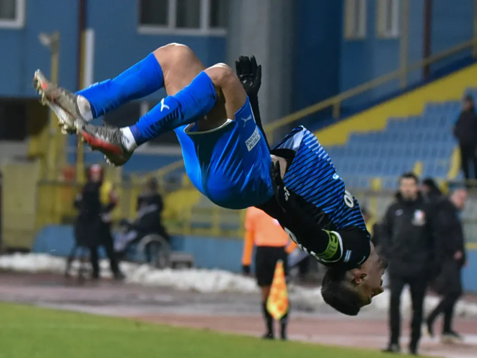 Andrei Virgil Ivan se bucura dupa un gol marcat in meciul de fotbal dintre Gaz Metan Medias si Universitatea Craiova, contand pentru Liga 1 Casa Pariurilor, desfasurat pe Stadionul Municipal din Medias, sambata 18 decembrie 2021. © FOTO:Alex VeresSPORT PICTURES