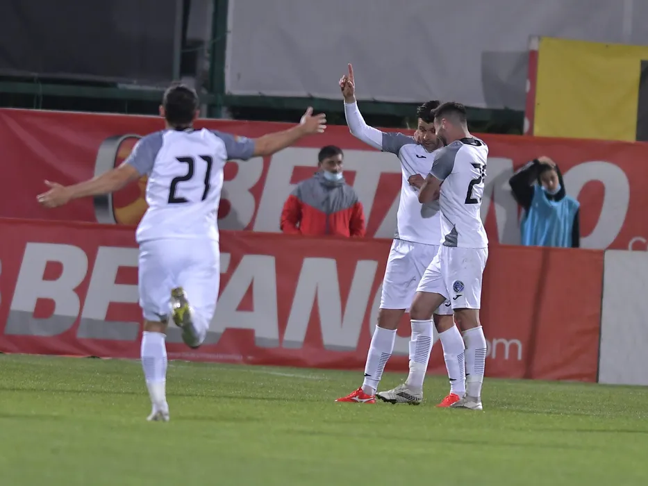 Raul Andrei Rusescu se bucura dupa un gol marcat in meciul de fotbal dintre FCSB si Academica Clinceni, contand pentru Play-off-ul Ligii 1 Casa Pariurilor, desfasurat fara spectatori pe Stadionul Marin Anastasovici din Giurgiu, luni 10 mai 2021. © FOTO:Razvan Pasarica/SPORT PICTURES