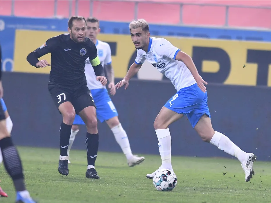 Eugeniu Cebotaru si Andrei Virgil Ivan in meciul de fotbal dintre Universitatea Craiova si Academica Clinceni, contand pentru Liga 1 Casa Pariurilor, desfasurat fara spectatori pe Stadionul Ion Oblemenco din Craiova, vineri 23 octombrie 2020. © FOTO:Razvan Pasarica/SPORT PICTURES