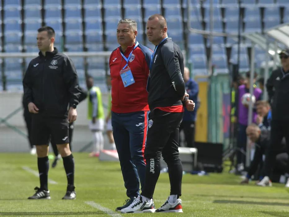 Ilie Stan si Arbitrul de rezerva Eduard Ionita in meciul de fotbal dintre Gloria Buzau si FC Botosani, contand pentru SuperLiga Superbet - Play-Out, desfasurat pe Stadionul Gloria din Buzau, duminica 27 aprilie 2025. © FOTO: Cristi Stavri/SPORT PICTURES