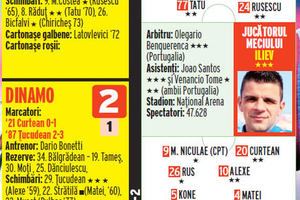 Iliev 3 – Dinamo 2!** Tănase&Co câștigă în fața a 50.000 de fani și Steaua speră în continuare la titlu