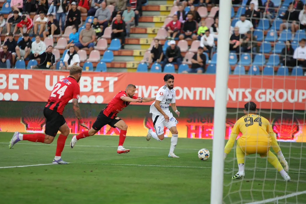 Stefan Bodisteanu si Peter Gal-Andrezly, Janos Krisztian Hegedus in meciul de fotbal dintre FC Botosani si FK Csikszereda Miercurea Ciuc, contand pentru Superliga Superbet, desfasurat pe Stadionul Municipal din Botosani, sambata 23 august august 2025. © FOTO:Ionut Tabultoc/SPORT PICTURES