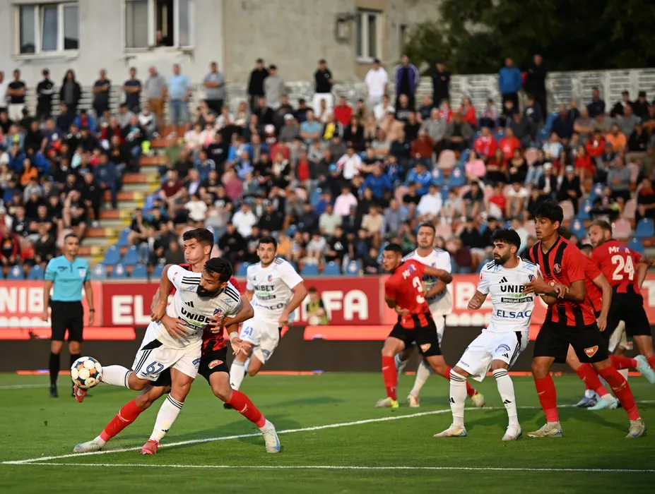 Enriko Papa, Arpad Sebastian Mailat in meciul de fotbal dintre FC Botosani si FK Csikszereda Miercurea Ciuc, contand pentru Superliga Superbet, desfasurat pe Stadionul Municipal din Botosani, sambata 23 august august 2025. © FOTO:Ionut Tabultoc/SPORT PICTURES