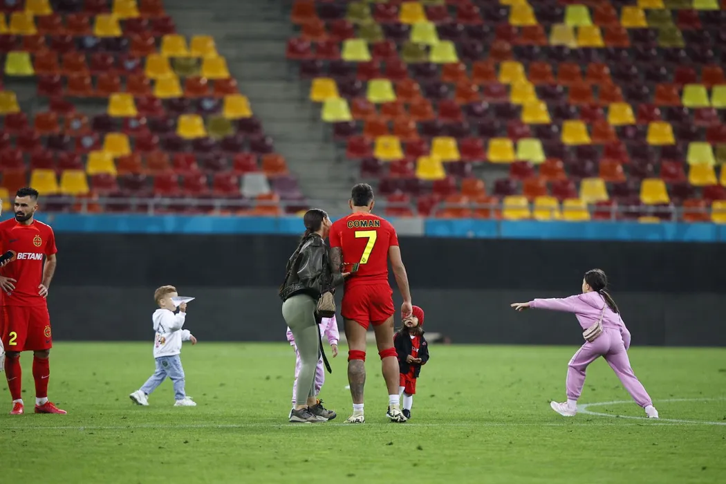 Imaginea serii cu Florinel Coman şi iubita sa! „Pantera” a atras toate privirile când a coborât pe gazon, alături de copilul lor. FOTO PROSPORT