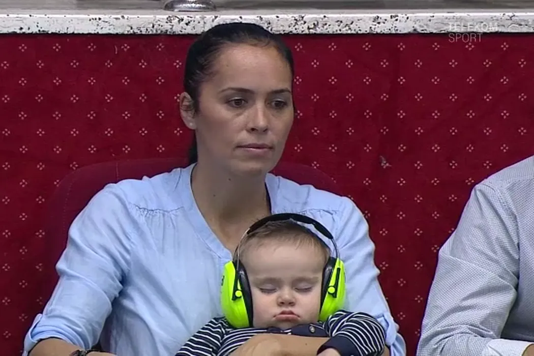 IMAGINEA SERII | Fiul Aureliei Brădeanu a adormit în vacarmul din Sala Polivalentă, în timpul meciului CSM – Ferencvaros. Cum l-a protejat „Mika”
