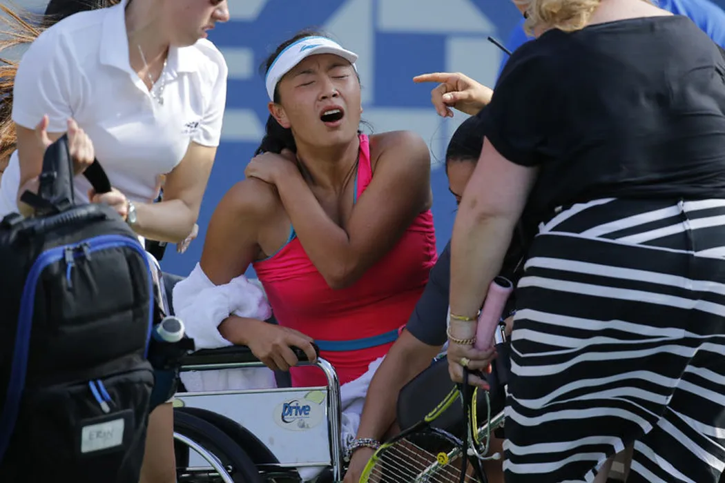 IMAGINEA ZILEI | Shuai Peng a părăsit terenul în scaunul cu rotile din cauza durerilor musculare. Chinezoaica a abandonat semifinala cu Wozniacki de la US Open