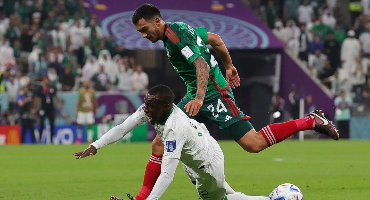 Saudi Arabia v Mexico 2022 FIFA World Cup, WM, Weltmeisterschaft, Fussball Saud Abdulhamid of Saudi Arabia is fouled by Luis Chavez of Mexico during the 2022 FIFA World Cup Group C match at Lusail Stadium, Lusail Copyright: xPaulxChestertonx FIL-17655-0058,Image: 741313798, License: Rights-managed, Restrictions: PUBLICATIONxNOTxINxUKxCHN, Model Release: no