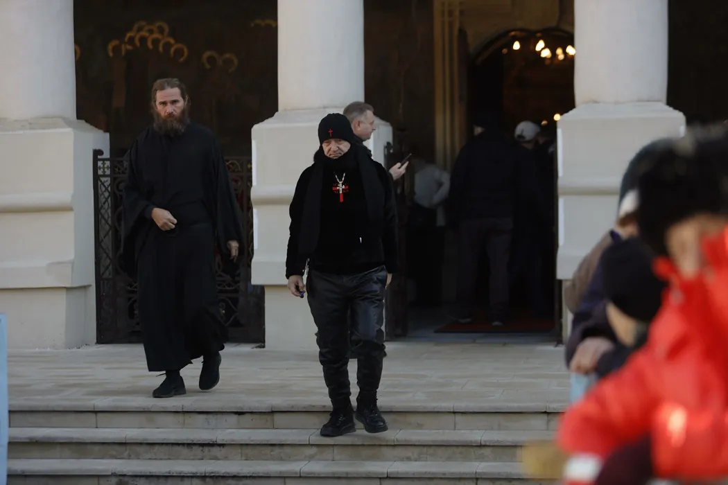 Imagini copleșitoare cu Gigi Becali, în genunchi, de Bobotează. Miliardarul s-a așezat, smerit, și s-a rugat: a fost însoțit de credinciosul subaltern Alexandru Tudor, îmbrăcat în straie monahale