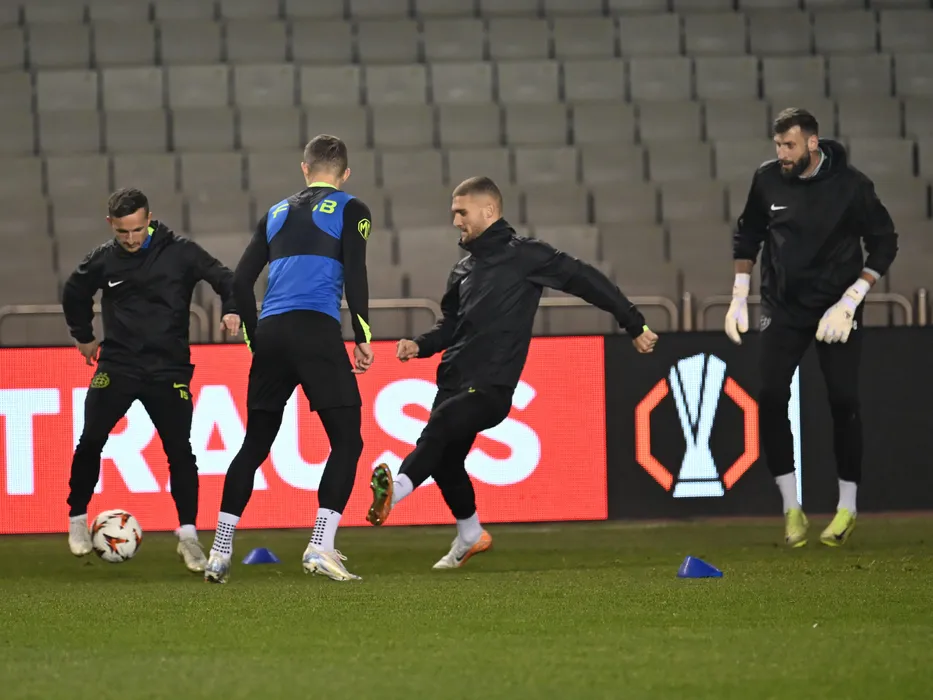 Fotbalistii de la FCSB Marius Ștefănescu, George Daniel Bîrligea si Lukas Zima la antrenamentul oficial de dinaintea meciului impotriva celor de la Qarabag, din cadrul UEFA Europa League, desfasurat pe Stadionul Republican Tofiq Bahramov din Baku, miercuri 22 ianuarie 2025. © FOTO:Razvan Pasarica/SPORT PICTURES