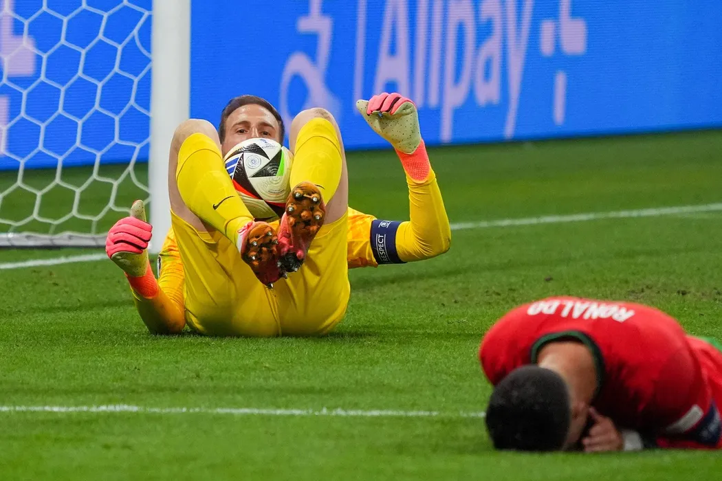 Grosse Chance kurz vor dem Ende für Cristiano Ronaldo Portugal, 07, doch er schießt direkt auf Torwart/Goalie Jan Oblak Slowenien, Slovenia, 01 - Frankfurt 01.07.2024: Portugal vs. Slowenien, EURO2024, M41 Achtelfinale, EM-Arena Frankfurt *** Great chance just before the end for Cristiano Ronaldo Portugal, 07 , but he shoots straight at goalkeeper Jan Oblak Slovenia, Slovenia, 01 Frankfurt 01 07 2024 Portugal vs Slovenia, EURO2024, M41 Round of 16, EM Arena Frankfurt,Image: 886404196, License: Rights-managed, Restrictions: Credit images as "Profimedia/ IMAGO", Model Release: no