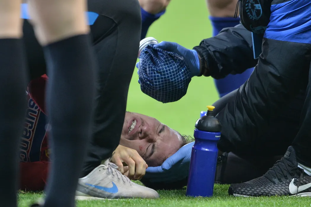 Imagini emoționante cu Darius Olaru. Mijlocașul a fost ”groggy” după ce s-a accidentat în meciul FCSB – Craiova | FOTO