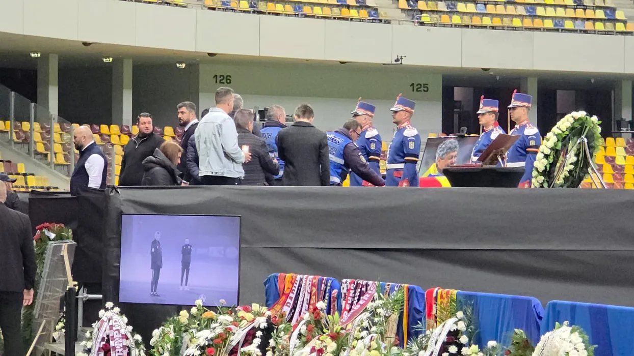 Ce imagini emoționante! Reprezentanții Jandarmeriei și cei care au asigurat paza au fost ultimii care și-au luat adio de la Mircea Lucescu la Arena Națională