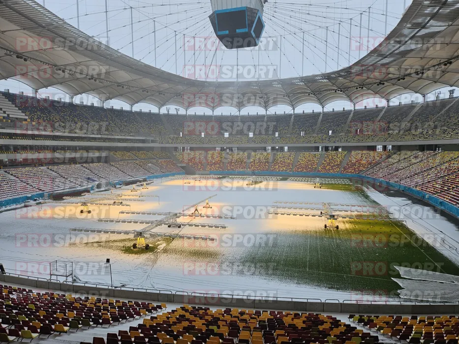 Imagini fabuloase cu Arena Națională la FCSB – PAOK sub cod galben de ninsoare viscolită! Cum arată gazonul cu 72 de ore înaintea partidei din Europa League. EXCLUSIV