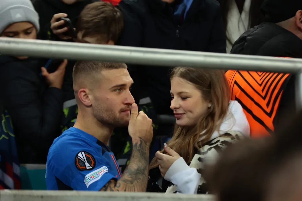 Imagini fabuloase cu Daniel Bîrligea și iubita lui, după FCSB – Manchester United 0-2. Starul lui Gigi Becali, consolat direct în tribună, după ratarea meciului