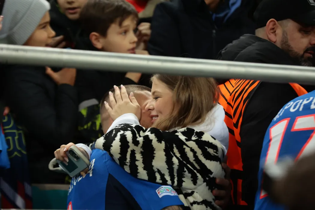 Imagini fabuloase cu Daniel Bîrligea și iubita lui, după FCSB – Manchester United 0-2. Starul lui Gigi Becali, consolat direct în tribună, după ratarea meciului