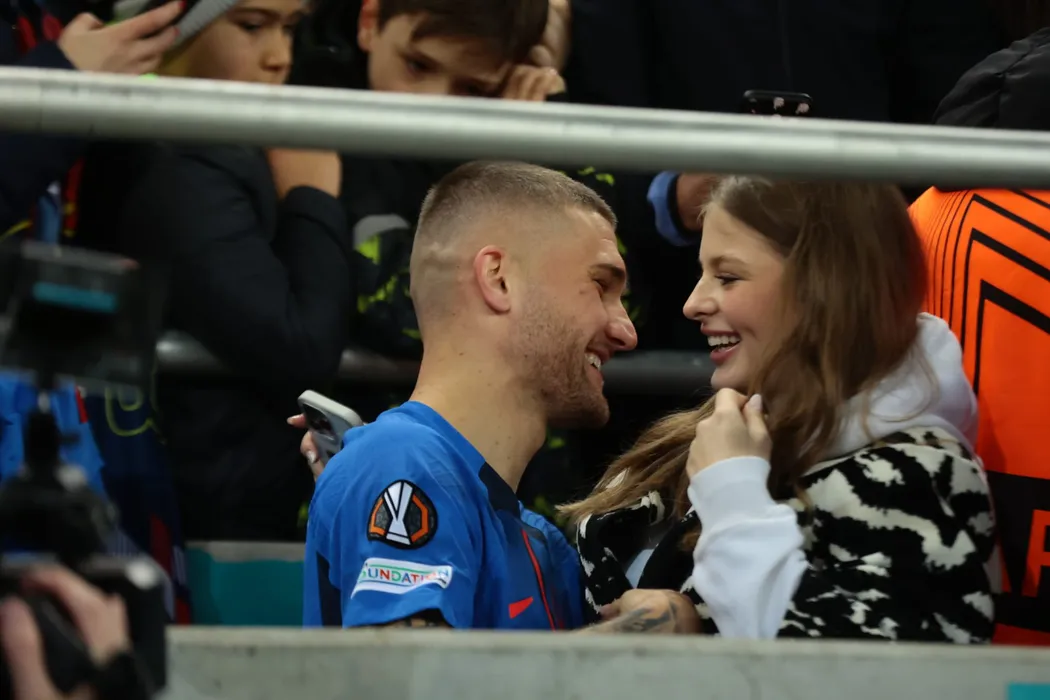 Imagini fabuloase cu Daniel Bîrligea și iubita lui, după FCSB – Manchester United 0-2. Starul lui Gigi Becali, consolat direct în tribună, după ratarea meciului