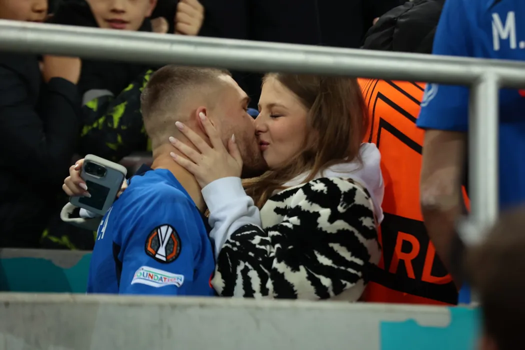 Imagini fabuloase cu Daniel Bîrligea și iubita lui, după FCSB – Manchester United 0-2. Starul lui Gigi Becali, consolat direct în tribună, după ratarea meciului