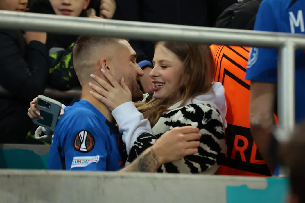 Imagini fabuloase cu Daniel Bîrligea și iubita lui, după FCSB – Manchester United 0-2. Starul lui Gigi Becali, consolat direct în tribună, după ratarea meciului