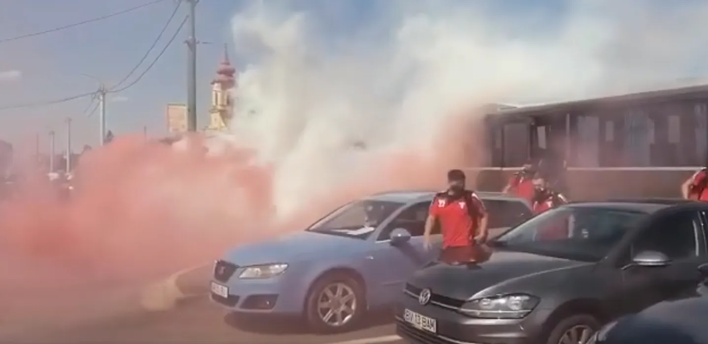 Imagini fabuloase de la Arad! Suporterii lui UTA au făcut galerie pe străzile din oraș și s-au auzit pe stadion | VIDEO