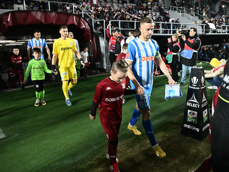 Fotbaliștii craioveni Screciu Vladimir Ionuț, Iulian Laurențiu Popescu si Nicușor Silviu Bancu la meciul de fotbal dintre Rapid Bucuresti si Universitatea Craiova, din cadrul Play-off-ului Superligii Superbet, desfasurat pe Superbet Arena-Giulesti din Bucuresti, sambata 29 martie 2025. © FOTO:Razvan Pasarica/SPORT PICTURES