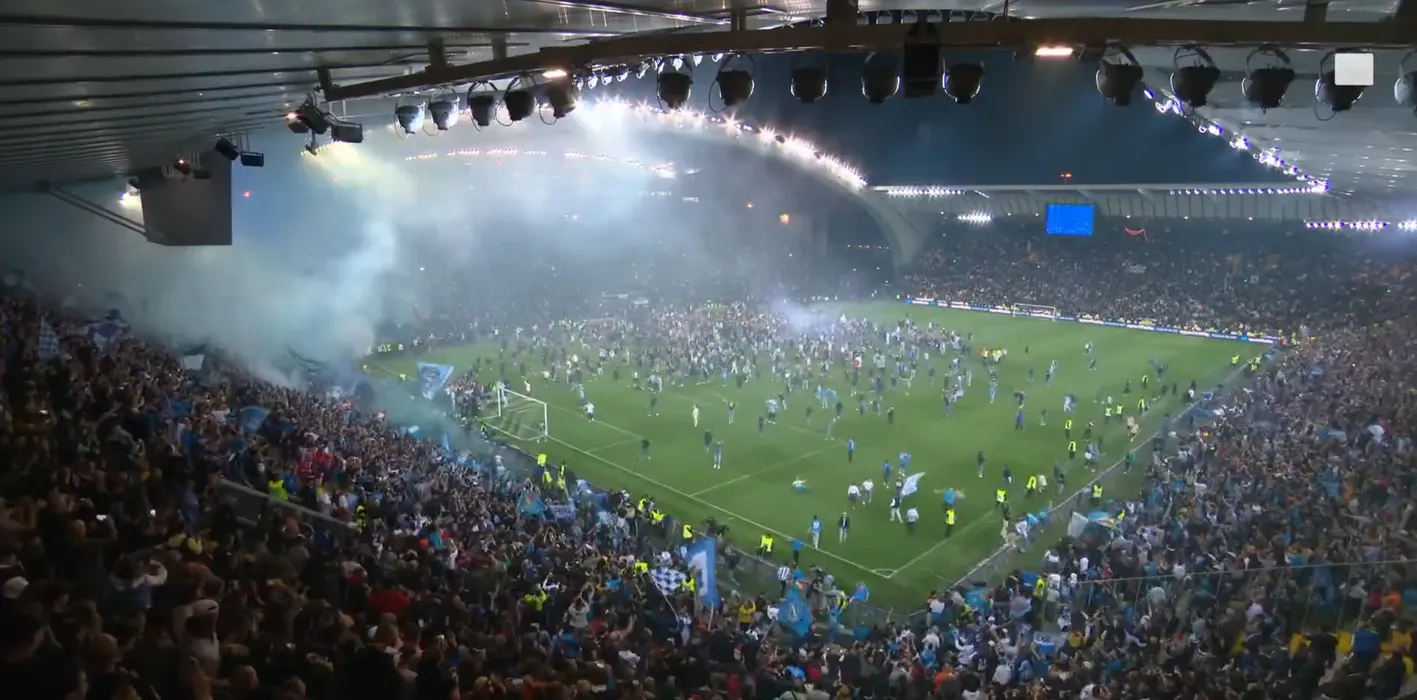 Momente incredibile imediat după fluierul final din Udinese – Napoli! Fani sărind în teren cu copii în brațe și jucători „vânați” pentru tricouri! | VIDEO