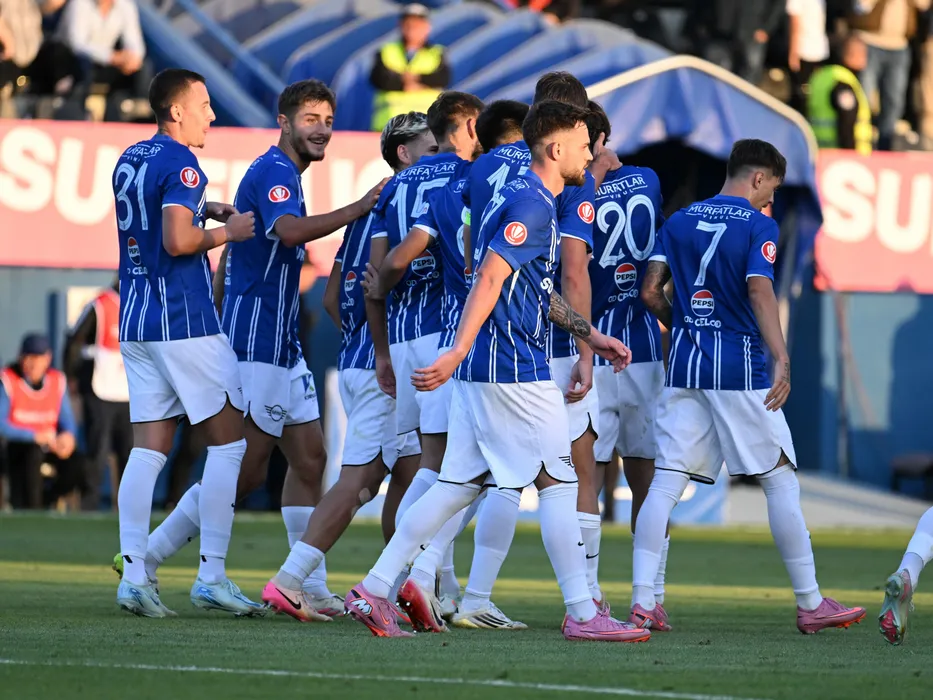 Fotbalistii constanteni Mihai Alexandru Isfan, Victor Robert Dican, Ionut Sebastian Cojocaru si Razvan Andrei Tanasa se bucura dupa un gol marcat in meciul de fotbal dintre Farul Constanta si Unirea Slobozia, contand pentru Superliga Superbet, desfasurat pe Stadionul central al Academiei Gheorghe Hagi din Ovidiu, duminica 28 septembrie 2025. © FOTO:Razvan Pasarica/SPORT PICTURES