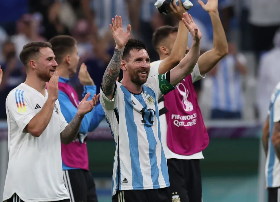 Football - 2022 FIFA World Cup Qatar - Group C - Round Two - Argentina vs Mexico - Lusail Iconic stadium, Lusail - Saturday 26th November 2022 Lionel Messi of Argentina celebrate at full time Credit: COLORSPORT