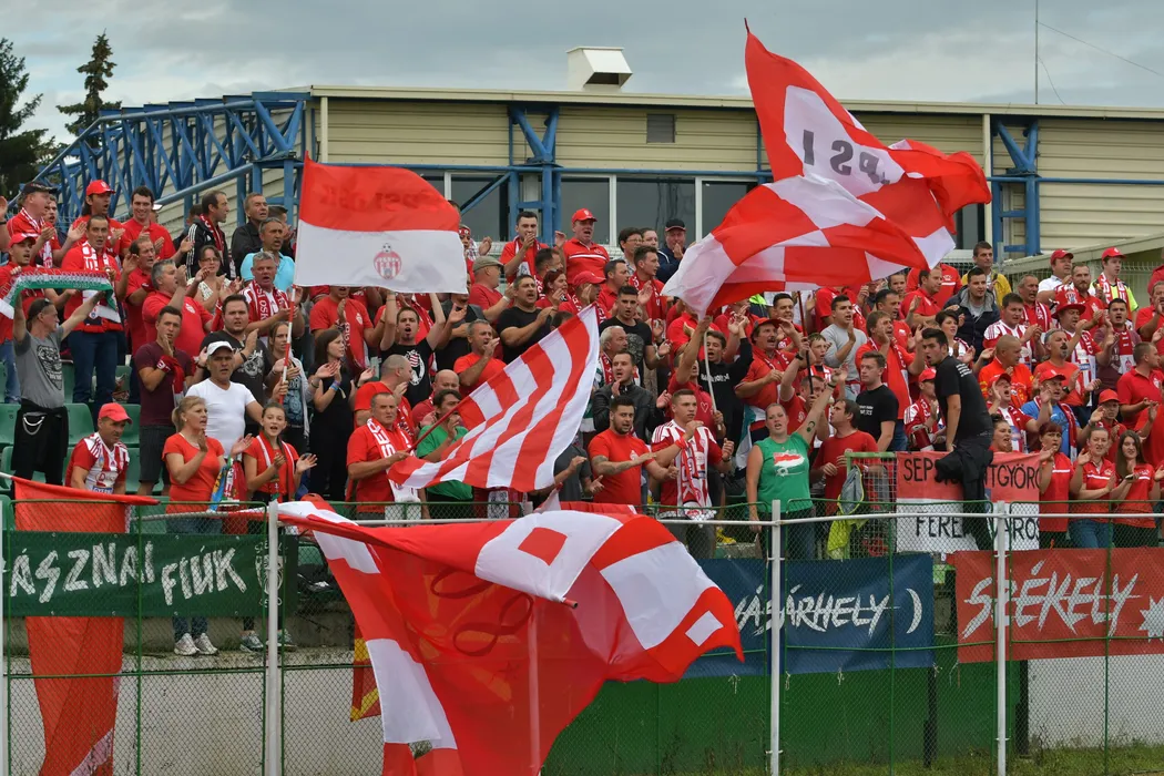 Suporteri Sepsi OSK reactioneaza in meciul de fotbal dintre Sepsi OSK SF. Gheorghe si Universitatea Craiova, din etapa a II-a a Ligii 1 Betano, disputat pe stadionul Municipal din Sfantu Gheorghe, duminica, 29 iulie 2018. © FOTO:Bogdan Balas / Sport Pictures