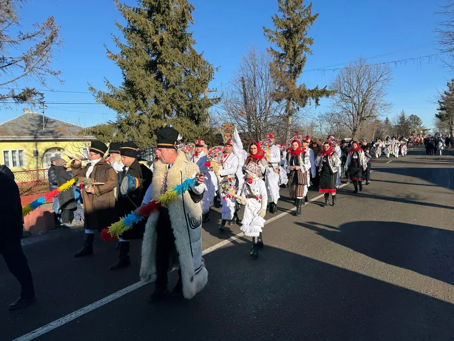 Imagini unice! Un președinte din SuperLigă, în suman și cu căciulă de astrahan în Ajun de Anul Nou, la Parada Obiceiurilor de Iarnă. SPECIAL