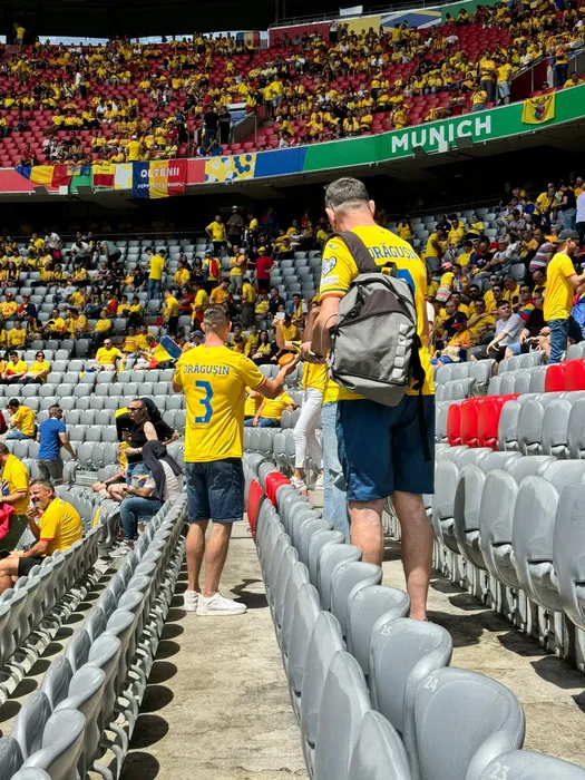 Imagini zguduitoare cu fiul lui Edi Iordănescu plângând și fratele selecționerului devenit șef de galerie cu tricolorul în mâini la România – Ucraina 3-0! Cum am trăit meciul printre familiile jucătorilor tricolori, în sectorul de suflet de pe Allianz Arena. EXCLUSIV