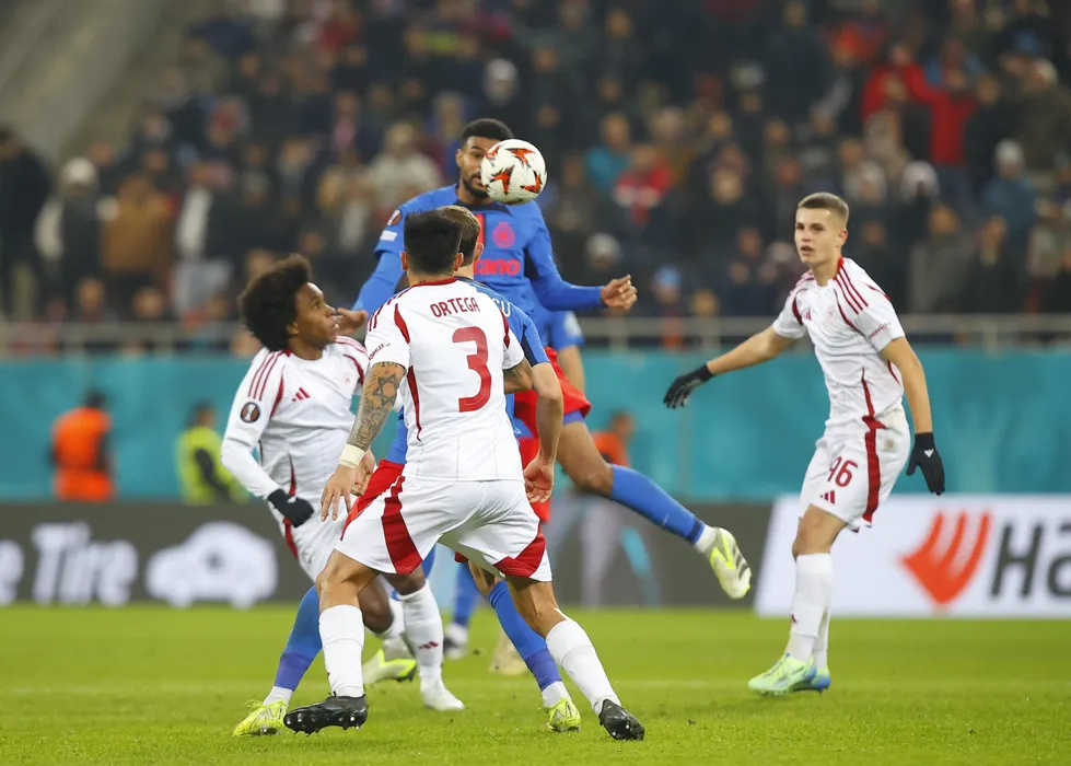 Imaginile groazei la FCSB – Olympiacos! Fotbalistul a ieșit plin de sânge de pe teren
