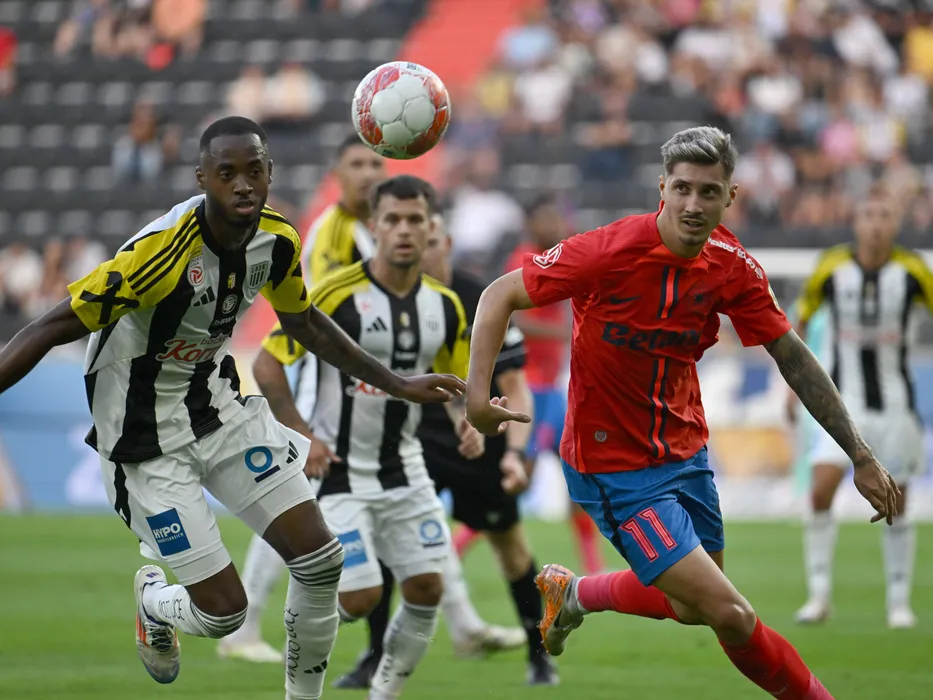 Moses Usor si David Raul Miculescu in meciul dintre Lask Linz si FCSB, contand pentru Play off-ul Europa League, desfasurat pe Oberösterreich Arena din Linz, joi 22 august 2024. © FOTO:Razvan Pasarica/SPORT PICTURES