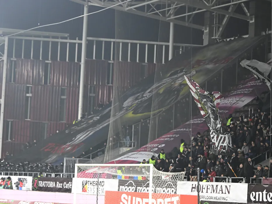 Coregrafie petrolista prezentata in peluza la meciul de fotbal dintre Rapid Bucuresti si Petrolul Ploiesti, din cadrul Superligii Superbet, desfasurat pe Superbet Arena-Giulesti din Bucuresti, vineri 6 februarie 2026. © FOTO:Razvan Pasarica/SPORT PICTURES